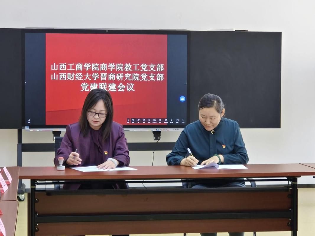 活动伊始,双方分别介绍了各自党支部在组织建设、理论学习、党员教育管理等方面的基本情况与特色做法,并分享了党建工作中的典型经验。在全体与会人员的见证下,山西财经大学晋商研究院党支部与山西工商学院商学院教工党支部正式签订了党建联建协议书。根据协议,双方将建立长期稳定的合作机制,推动资源共享与优势互补,切实提升基层党组织的凝聚力与战斗力。